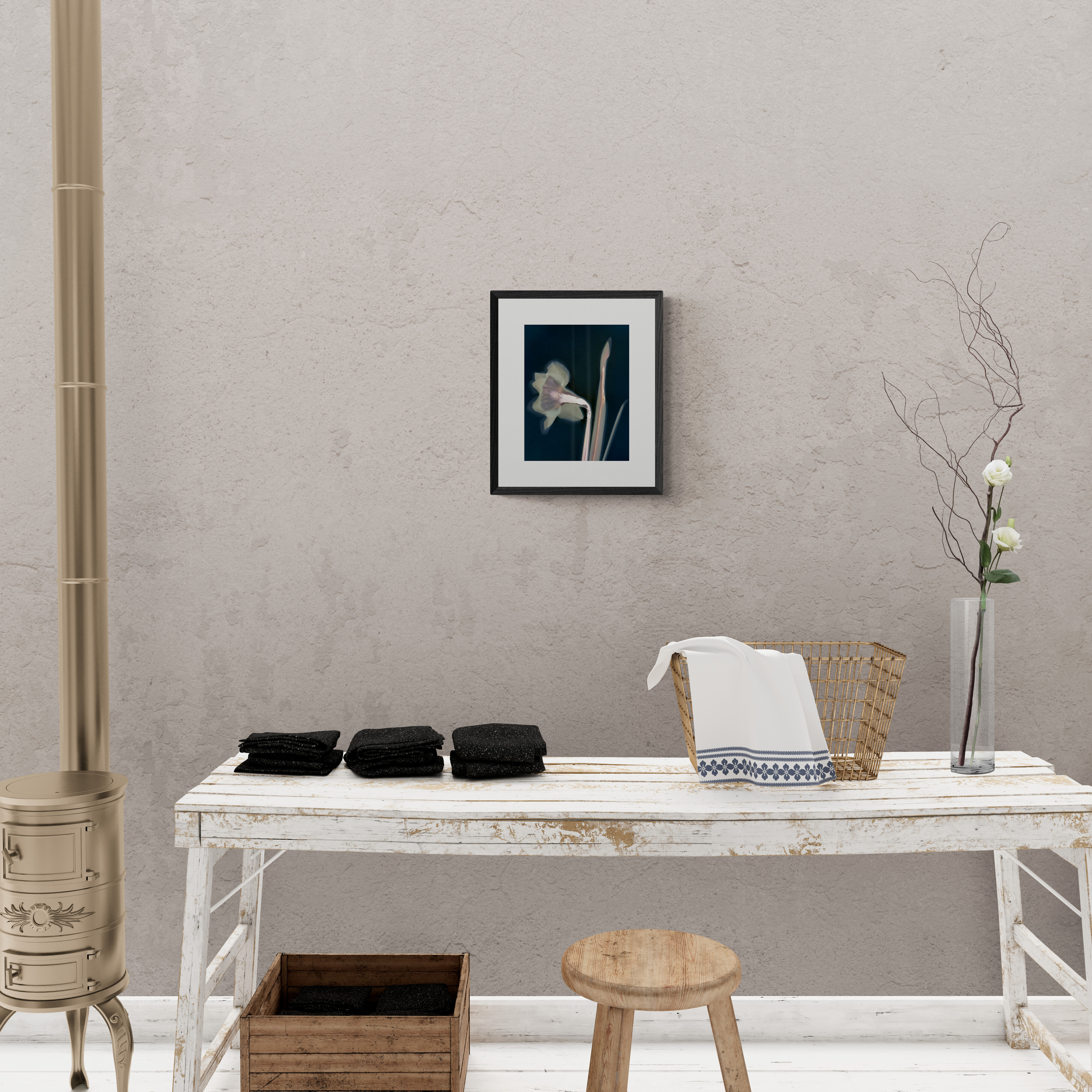 The work presented begins with the research and collection of plants found in my environment, that is to say flowers and plants that I expose in the sun on expired argentic photo paper. Not being fixed by any chemical process, the photograms disappear. Before their disappearance and to preserve the imprint, the argentic photo paper is digitized. The virtual images thus created are refined using digital tools. This artistic process reveals the complex process of plant decomposition while addressing its metamorphic power. It is also a testament to the cyclical nature of everything, as illustrated by the withering and dying plant on photographic paper.